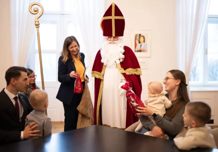In den vergangenen Tage zog der heilige Nikolaus  durch Österreich und sorgte für zahlreiche strahlende Augen bei den Kindern. Einen Zwischenstopp legte der Nikolaus auch im Bundeskanzleramt ein, wo er von Familienministerin Claudia Plakolm empfangen wurde. Foto: BKA/Paul Gruber