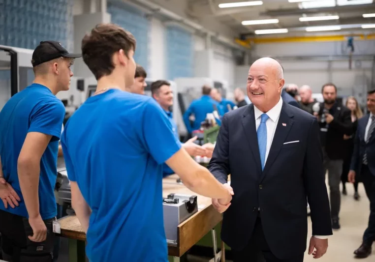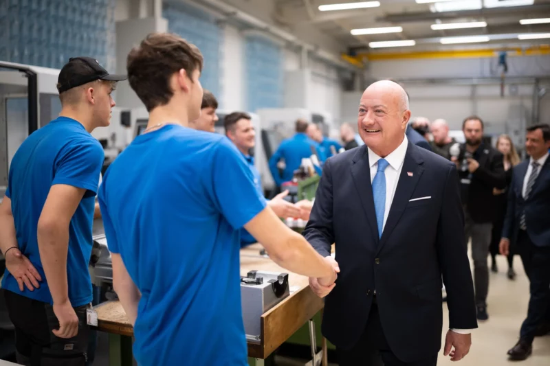 Im Rahmen seines Bundesländertages in Vorarlberg besichtigt Bundeskanzler Christian Stocker auch das Verpackungsunternehmen ALPLA. Neben einem Gespräch mit der Geschäftsführung, wurde der Kanzler auch durch die Produktionsstätte des Unternehmens geführt. Dabei durften persönliche Gespräche mit den Mitarbeitern nicht fehlen. Foto: BKA/PAul Gruber