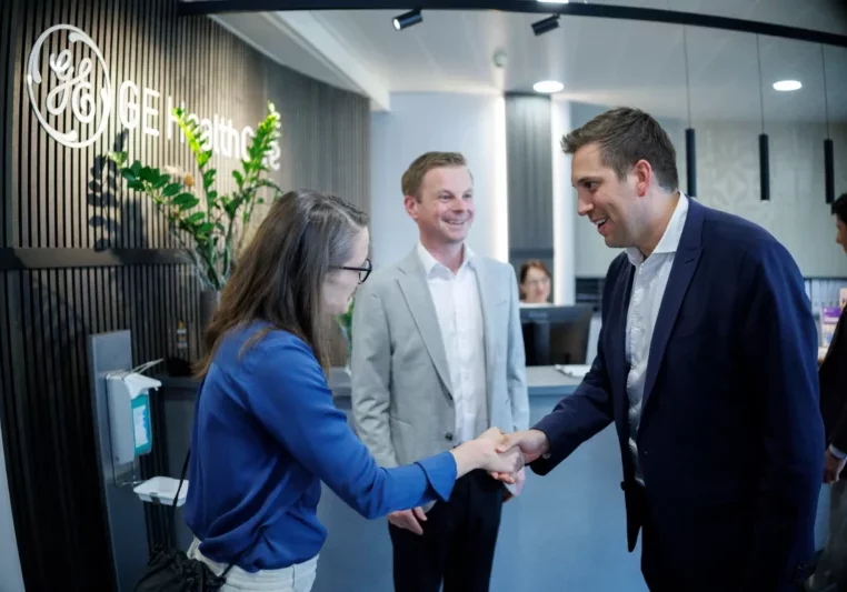 Gleich in zwei Bundesländern war diese Woche Digitalisierungsstaatssekretär Alexander Pröll zu Gast. Neben Salzburg gastierte Pröll auch in Oberösterreich. Dort besuchte er unter anderem  die GE HealthCare Austria GmbH, die sich auf die Entwicklung und Produktion von Medizintechnik, speziell Ultraschallgeräte spezialisiert hat. Foto: BKA/Andy Wenzel